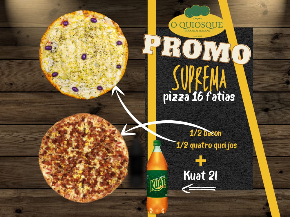O Quiosque Pizzas isn’t just a place to grab a meal; it’s a destination where the love for pizza shines through in every bite. From the tempting aroma of freshly baked crust to the flavorful toppings on the Pizza Suprema 16 Fatias Kuat, each dish reflects a passion for crafting memorable experiences. For anyone exploring restaurants in São José dos Pinhais, this spot is a must-visit, whether for a casual lunch, a fun happy hour, or a cozy night in with delivery.