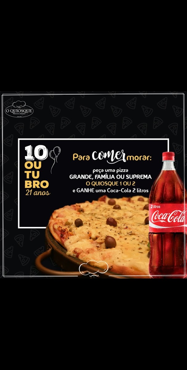 In conclusion, the menu at O Quiosque Pizzas offers a focused yet appealing selection centered around classic Italian pizzeria favorites, with an emphasis on convenience through Delivery and Pedidos Online options. The restaurant caters well to different dining occasions, including Reserva para Aniversários, making it suitable for group celebrations. Their offerings highlight traditional Pizzaria Italiana flavors, complemented by thoughtful Opções Vegetarianas, ensuring that non-meat eaters are not left out. While specific dish names and prices are not detailed, the overall menu reflects a balance between accessibility and variety, appealing to both casual diners and those seeking a more customized experience for special events.